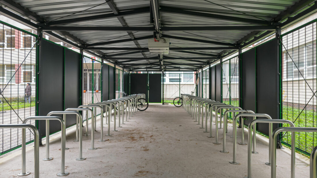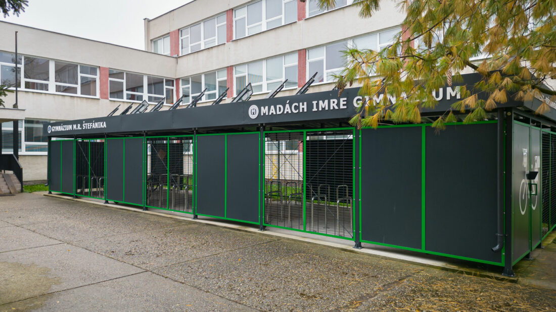 Implementierung von Cyklosafe Lite Atyp für Schüler und Lehrer des Gymnasiums. Im oben genannten Cyklosafe Lite Atyp kommt SMART-Technologie zum Einsatz (Eingang zu den Chips und auch zur App, Kamera, Beleuchtung und andere), die durch mehrere Photovoltaik-Paneele betrieben wird, im Vergleich zu der üblichen Anzahl, um in Zukunft eine beliebige Anzahl von Elektrofahrrädern aufladen zu können, für die es vorbereitet ist. Typische U-Ständer erlauben es ihnen, sich an den Rahmen ihres Fahrrads zu lehnen und diesen zu verriegeln.