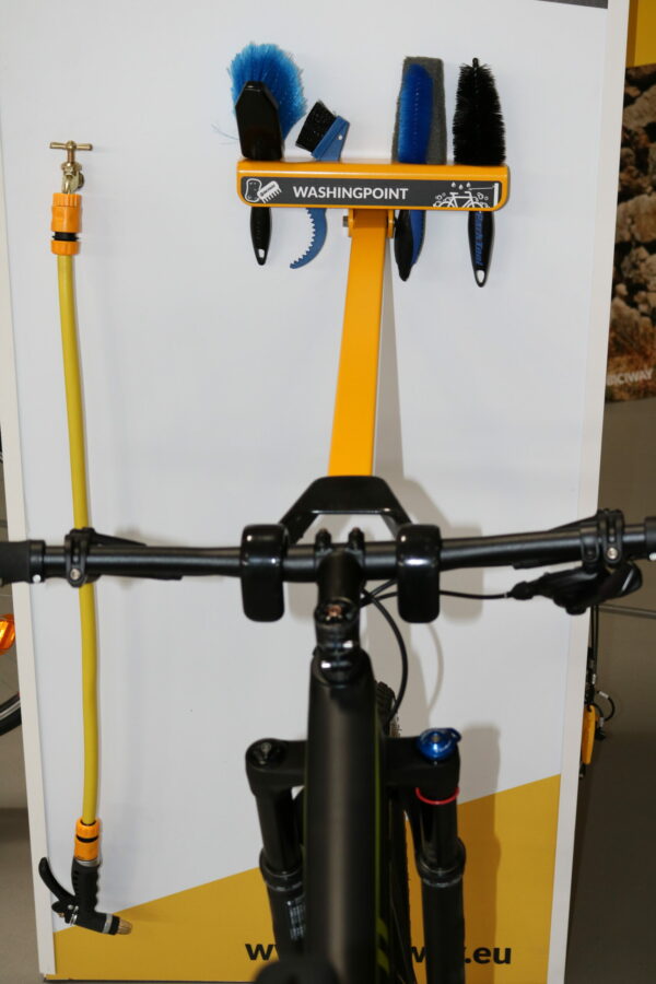 Čistiace stanovisko na bicykle je kompaktné riešenie s náradím určeným an čistenie bicyklov.