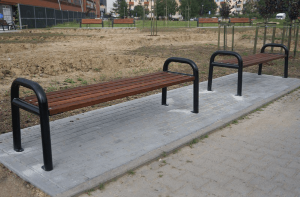 Lavička bez operadla typ 9 je vyrobená z rúr Ø 60,3 mm, ktoré sú zároveň aj nohami lavičky. Sedadlo je z mäkkého dreva.